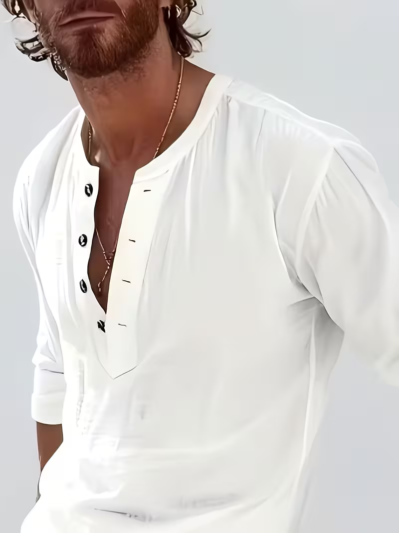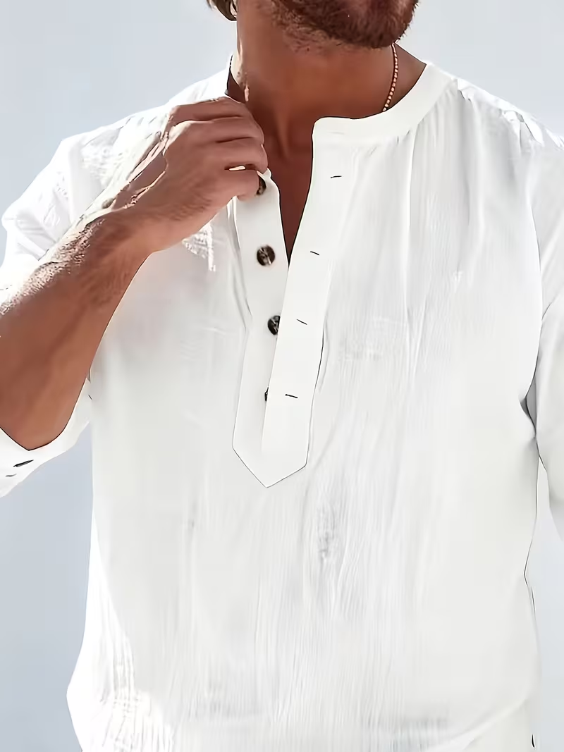 Men’S Fashionable Polo Collar Linen Shirt | Breathable Comfortable Casual Long Sleeve, All-Season Solid Color with Button Details